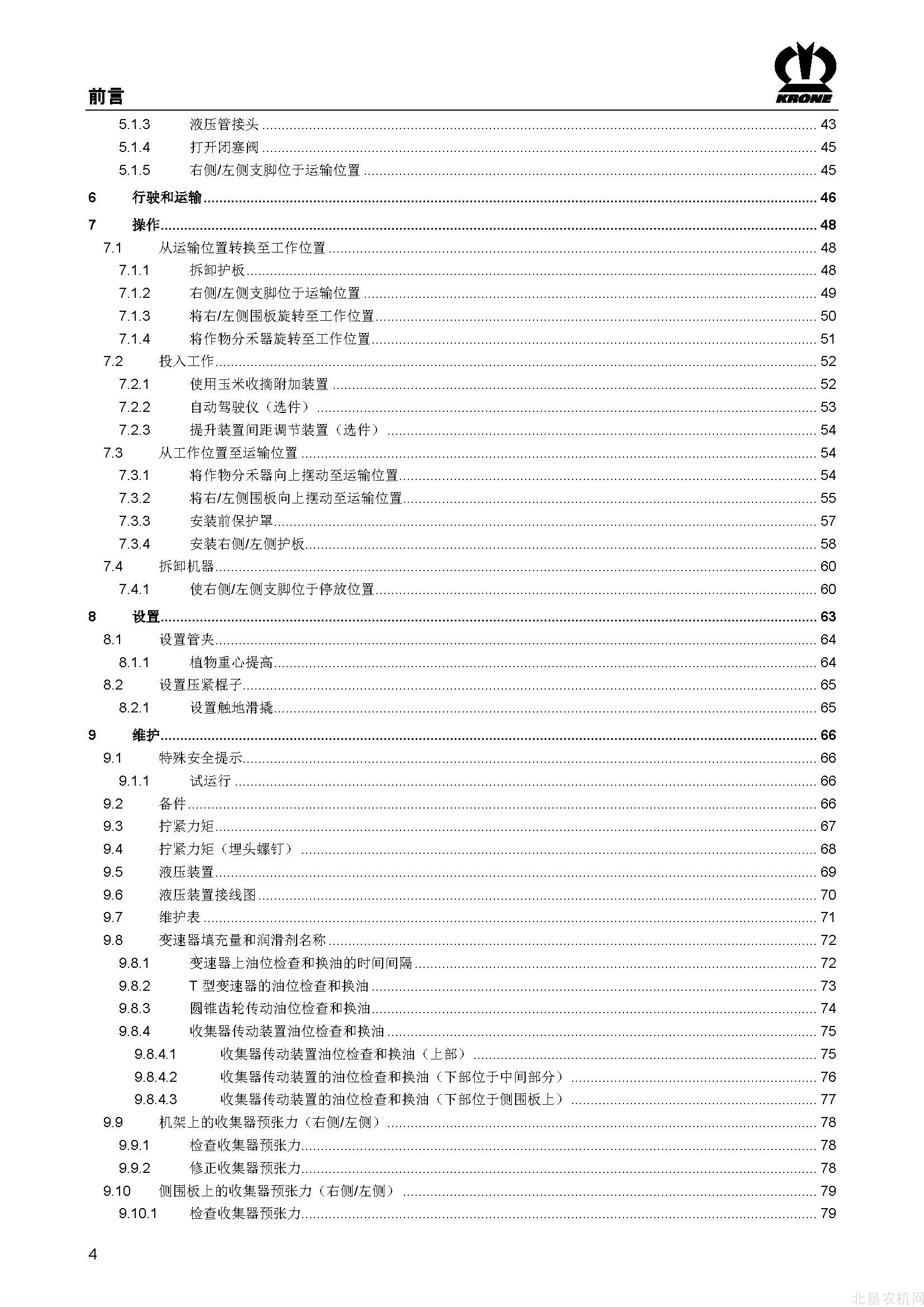克罗尼EasyCollect 6000 7500 9000割台操作手册_2011-4