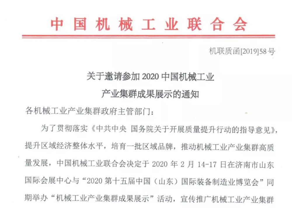中国机械工业联合会作为博览会主办方之一,将组织举办:“机械工业产业集群成果展示”活动,将有来自全国各地的机械工业产业集群“打卡”山东,展示最新产品及先进技术。
