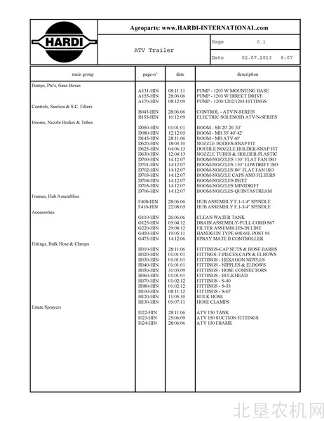 哈滴-喷药机 Arrow - Trailer 270/400 零件目录
