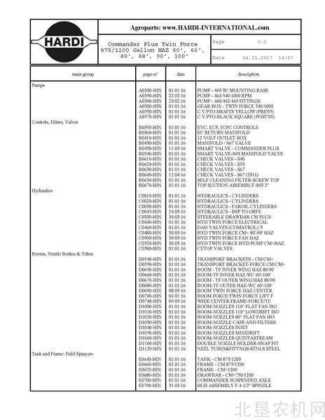 哈滴-喷药机 Twin-Force-875 750 1200 零件目录