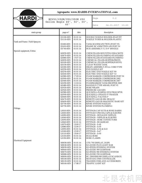 哈滴-喷药机 HC650/650M/950/950M 650 Gallon Eagle 45', 50', 60', 66' 零件目录