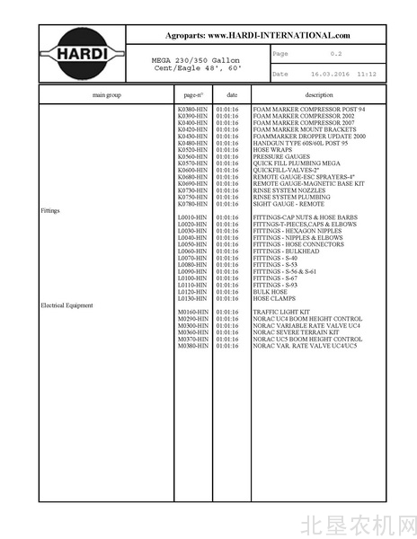 哈滴-喷药机 MEGA 230/350 Gallon Cent/Eagle 48', 60' 全系列 零件目录