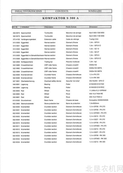 雷肯-搂草耙Kompaktor-BS300A-BS400A 零件目录