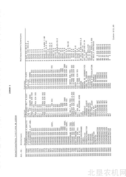 雷肯-动力耙 Zirkon-6 零件目录